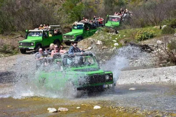 Experience an action-packed jeep safari from Belek through the wild landscapes of the Taurus Mountains. Drive off-road trails, visit traditional villages, enjoy scenic viewpoints, swim in a mountain river and taste a delicious BBQ lunch. A fun-filled day lasting approximately 6–7 hours.